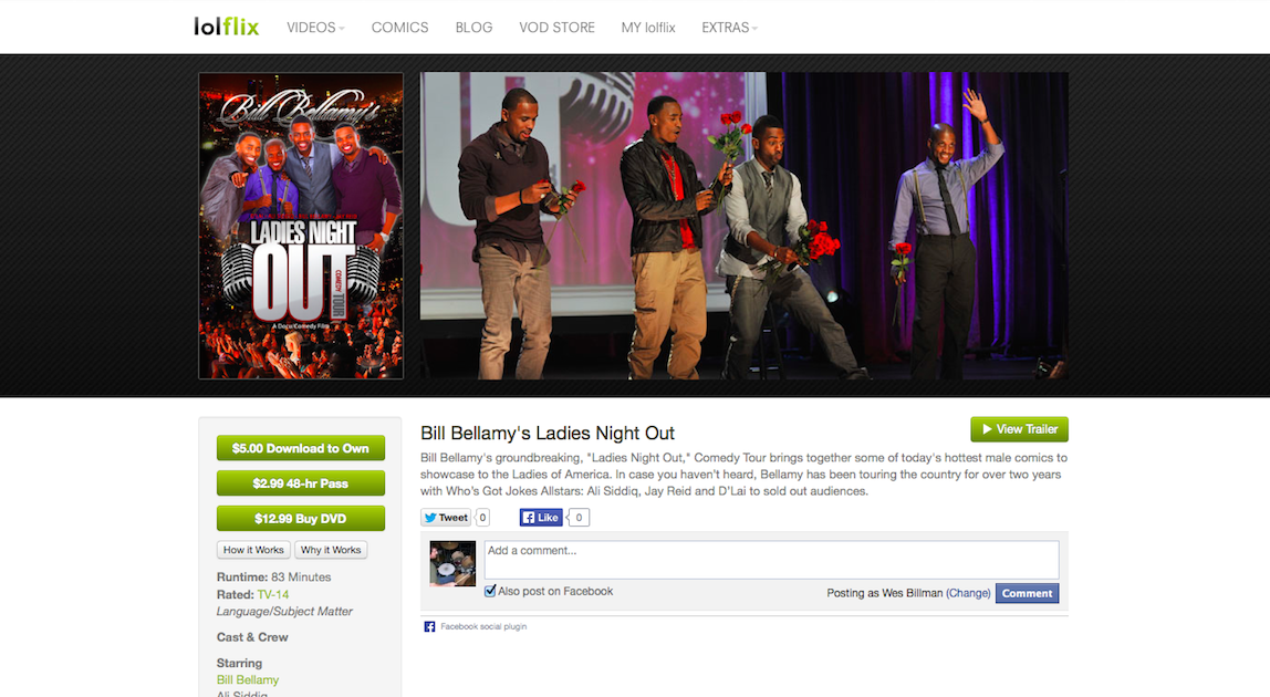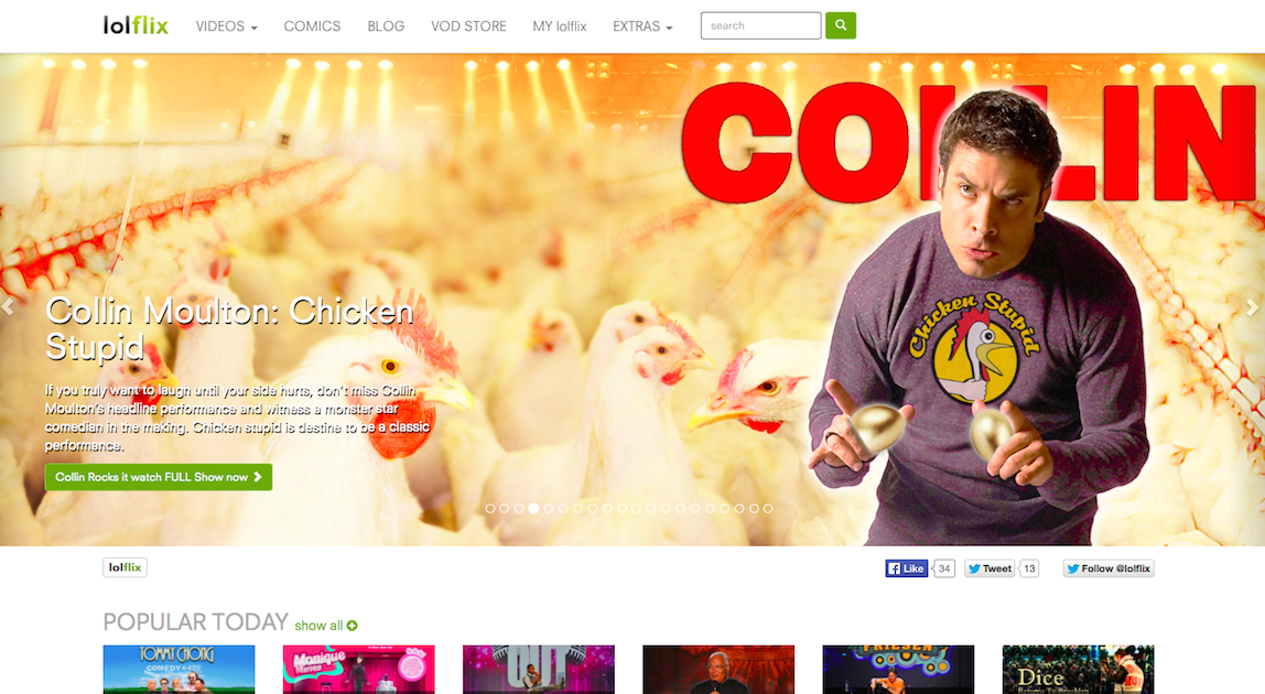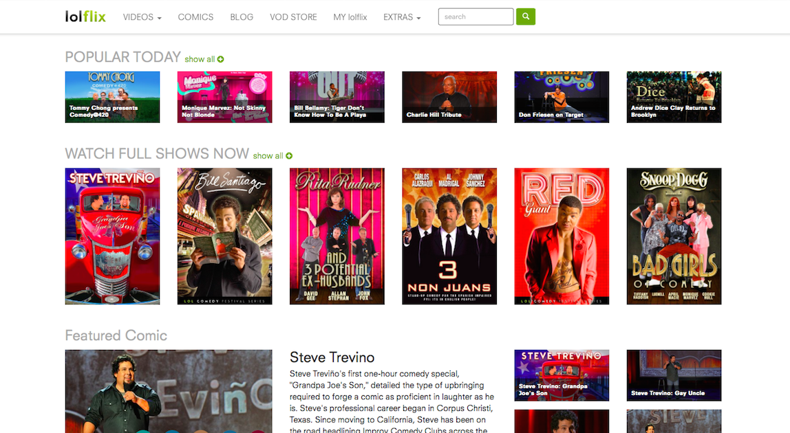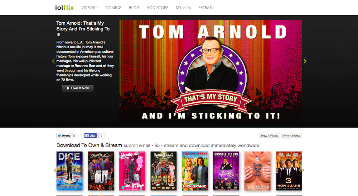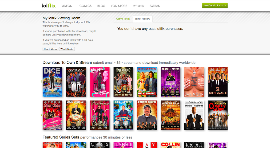 lolflix is like iTunes for stand-up comedy videos. It features dozens and dozens of comics from around the world in full-length performances that fans can purchase for download or rent to stream.