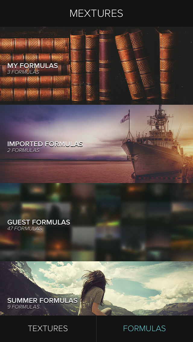 Mextures is an iPhone app that allows users to easily apply the amazing textures created by Merek Davis to photos taken with their iPhones. With different mextures formulas, users can create unlimited effects and turn everyday snapshots into dramatic photographs. Formulas can be saved and shared with other users, as well.